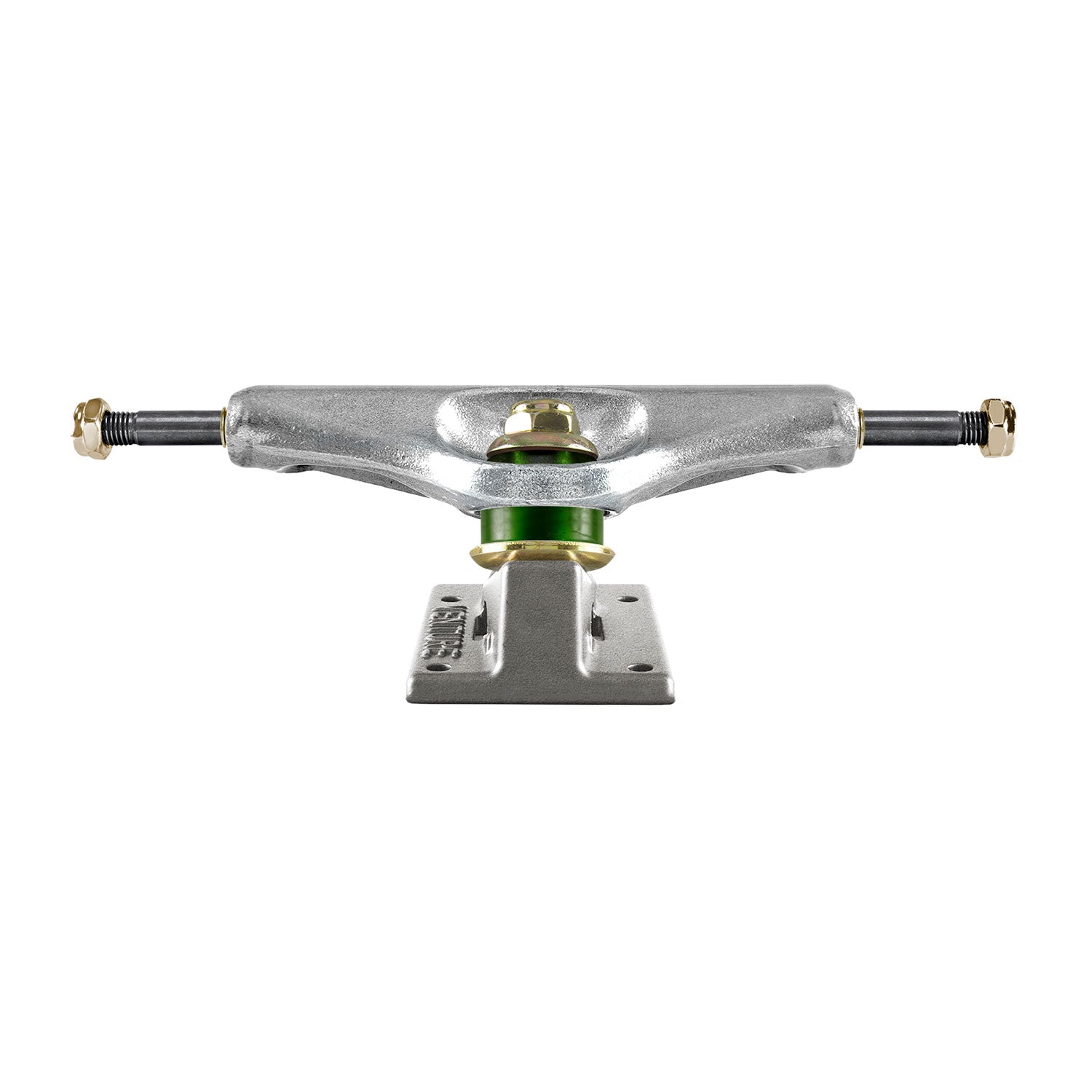 Solid axles. Solid kingpins. Clear Dark Green 90A Venture bushings.