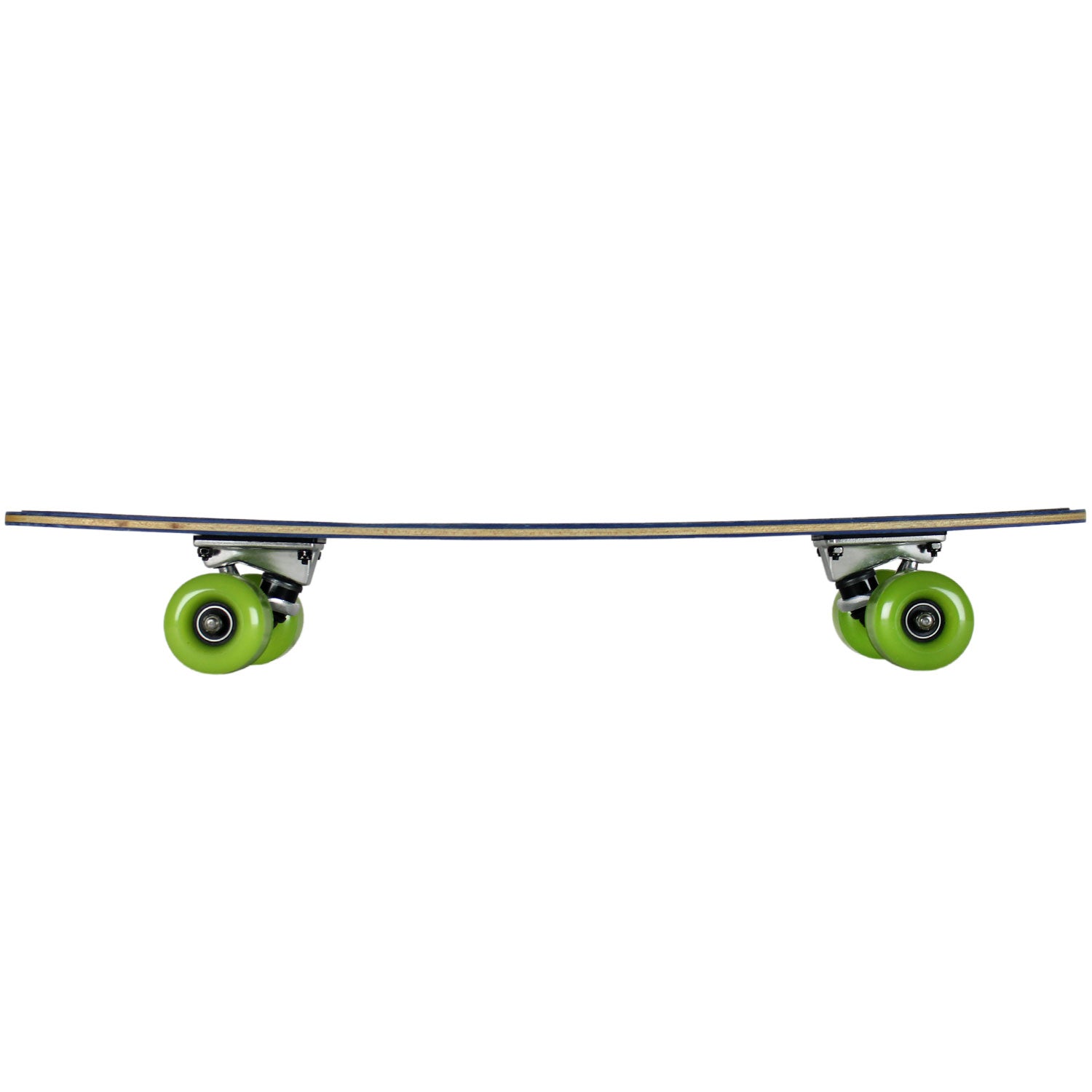 Get your retro style on with this deck originally manufactured by MPI in the 1970's. This model measures 6.75" x 27.375" with a wheelbase of 13.125". This deck features a flat, narrow round nose with a wide rounded tail and has a reverse camber shape. Obviously since the board is from the 70's it features the old school hole pattern which is still compatible with many of today's modern trucks. The top includes original die cut griptape. Comprised of a top and bottom layer of fiberglass with wood in the middle, the boards thickness measures 1/4". Buy it to skate or hang, this is a once in a lifetime opportunity to own a brand new skateboard manufactured in the 1970s to original skateboard specs. New old stock. Good to very good condition. Light surface wear from age/transportation/storage. Completed with modern parts, this skateboard features 4.0 aluminum alloy wheels, assorted color 61mm 78a USA made wheels, and bearings.