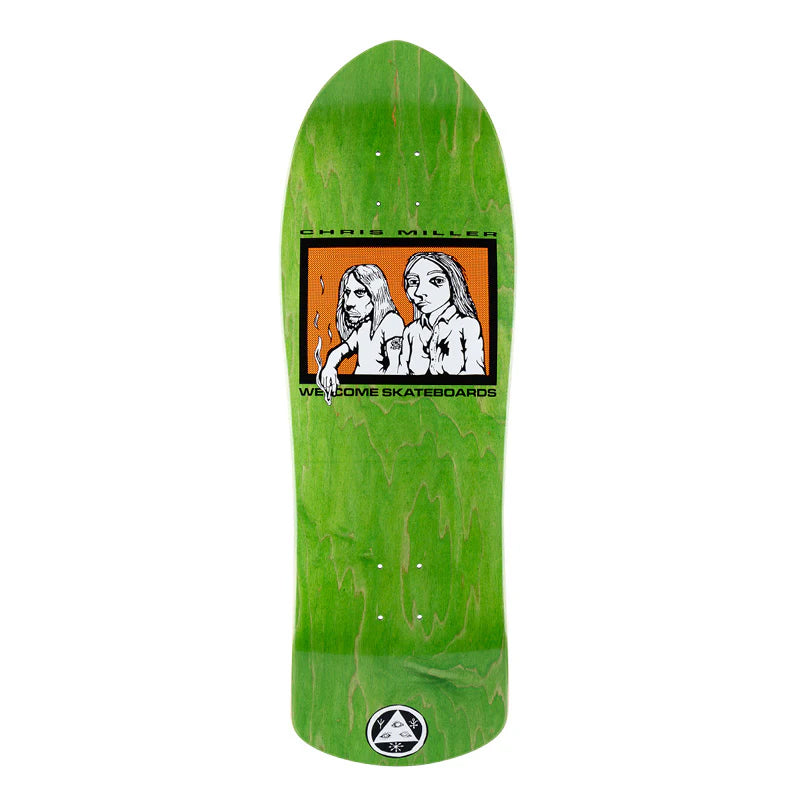 Welcome decks are produced with premium 7-Ply North American Maple. This board comes in assorted stained color veneers. 10.0" x 30". 15.00" Wheelbase. Refined 80s shape with modern concave. Original artwork by Jason Celaya.