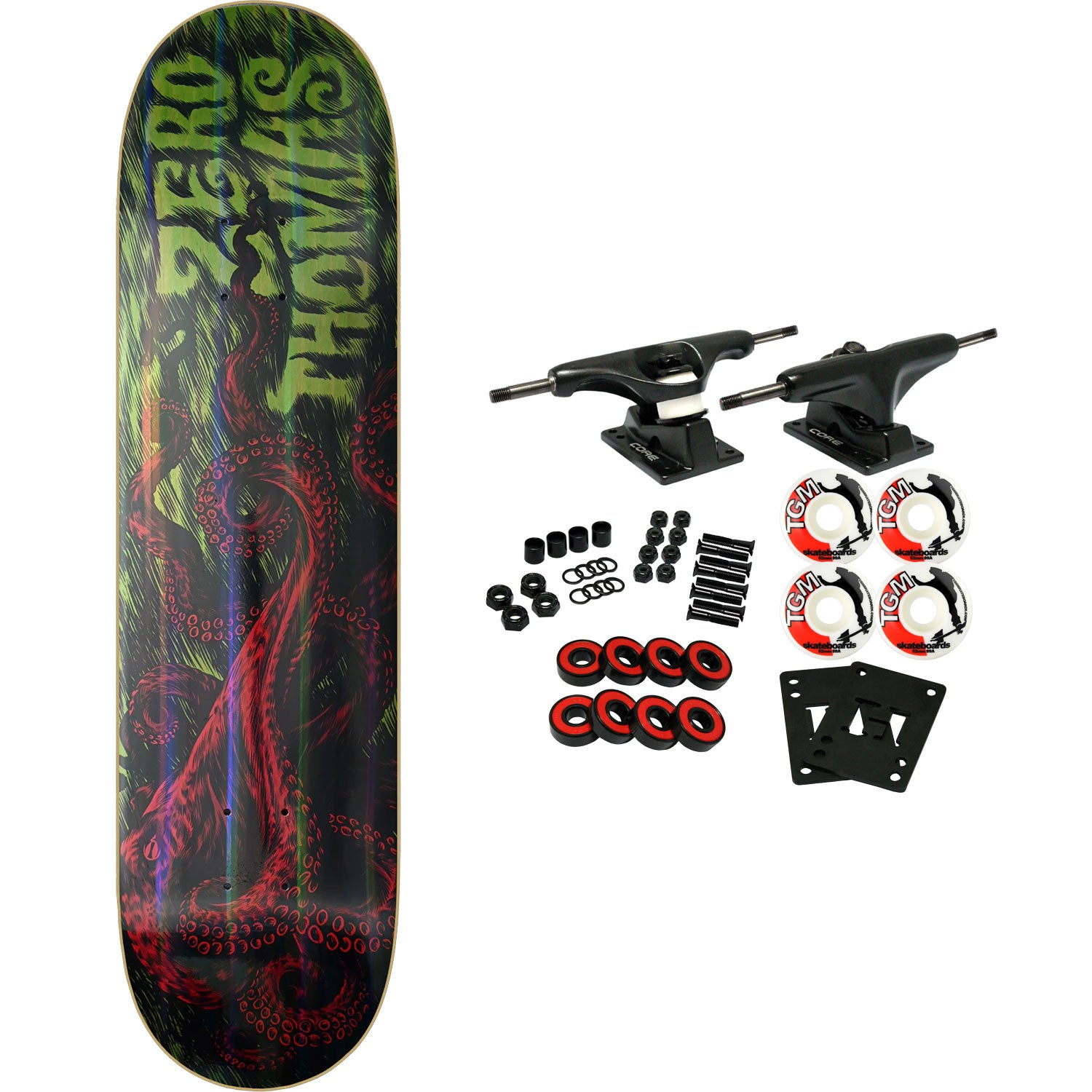 Board comes in assorted color top and bottom plys. Zero decks are constructed with 7-Ply North American Maple. This board measures 8.5" x 32.3" with a 14.5" wheelbase. Features holographic CD foil. Comes with Core trucks, 52mm TGM logo wheels, Amp abec 5 bearings, Black Diamond Griptape, risers, and hardware. Core trucks are light weight and feature heavy duty aluminum with grade 8 steel kingpins and axles, as well as USA made bushings and pivot cups. 52mm 99A are the perfect wheels for both street and park skating. Like the name states, Amp bearings are stimulants for your wheels! Light synthetic oil, Delrin Crowns, and Rubber Serviceable Shields are a few of the things that makes these bearings one of the best Abec 5 rated bearings on the market. Arrives un-assembled which allows for customization and a feeling of accomplishment. Skaters love building their boards! Easy to assemble!