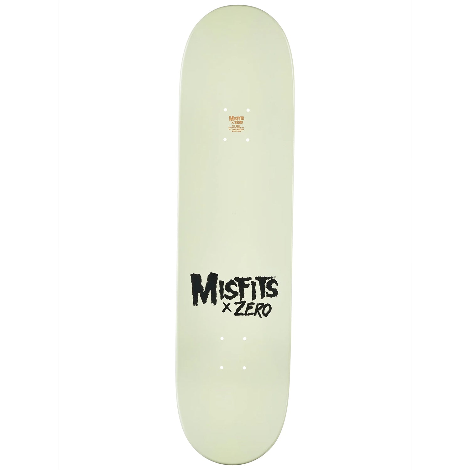Zero Skateboards X Misfits Officially Licensed board. Measures 8.25" x 31.9" with a 14.25" wheelbase. Glow in the Dark Dipped Deck.